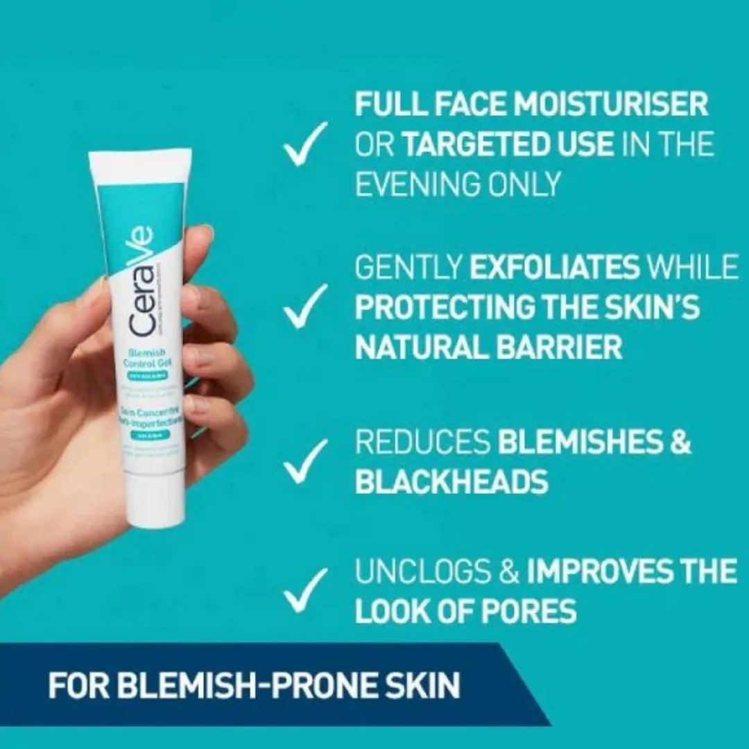 CeraVe Blemish Control Gel for Acne-Prone Skin – 40ml Anti-Imperfection Treatment with AHA, BHA, and 3 Essential Ceramides