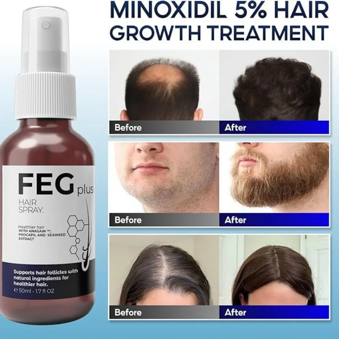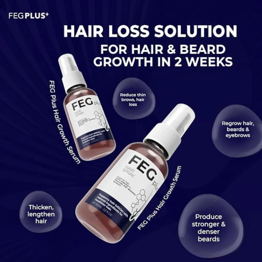 Boost your hair density with this powerful FEG Hair Growth Bundle. It includes two 50ml bottles of FEG Hair Growth Spray Plus, formulated with AnaGain, Procapil, and Seaweed extract to support follicles and prevent hair loss. The included Derma Roller enhances the treatment by creating micro-channels in the scalp, allowing the natural herbal ingredients to penetrate deeper and work faster. This combined system is suitable for both men and women looking to restore thinning hair.
