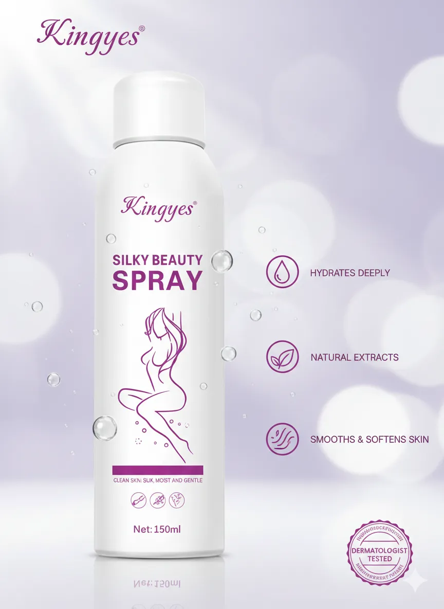 Kingyes Silky Beauty Spray offers a modern and convenient solution for achieving smooth, hair-free skin without the hassle of traditional methods. This 150ml spray is specifically formulated to be "Clean, Silk, Slip, Moist, and Gentle," ensuring that your hair removal process is as comfortable as it is effective.